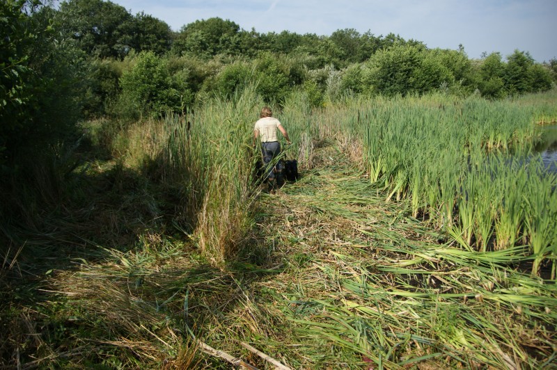 In 2000 is het natuurgebied de Oosterpolder, ten noorden van Haren ingericht. Een van de maatregelen was dat er een waterplas is aangelegd. De oevers van deze waterplas ontwikkelen zich als een natuurlijke oever met veel kenmerkende moerasplanten. Er komen echter ook een paar minder algemene soorten voor als veenpluis, snavelzegge en geelgroene zegge. Deze soorten duiden op kansen voor erg soortenrijke vegetaties, maar dan moet de natuurlijke ontwikkeling naar moerasbos wel geremd worden. Daarom heeft Het Groninger Landschap in 2009 in samenwerking met Boomvalk Groot Groenbeheer een proef gedaan met het maaien van een deel van de oevers van deze plas om te kijken hoe dat uitpakt voor de vegetatie. Als dit een gunstig effect heeft, wordt het maaibeheer gecontinueerd.